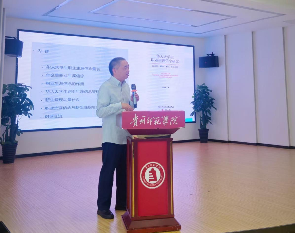 9月15日,贵州royal皇家88平台领携学派造梦社团在“一站式”大学生成长发展中心组织举办了“职业生涯信念与新生涯规划”主题讲座。活动邀请生涯教育专家彭永新博士担任主讲,职业生涯规划教师、2023级专职辅导员鲁蓓蓓,优秀校友、南明区苗苗小学心理健康教育教师何丽萍,全体2025级教育管理专业研究生以及学院的本科生代表参加了此次活动。